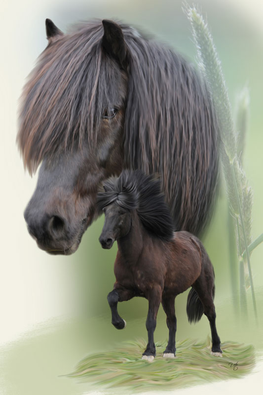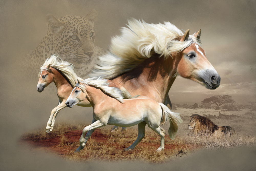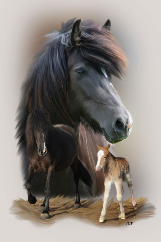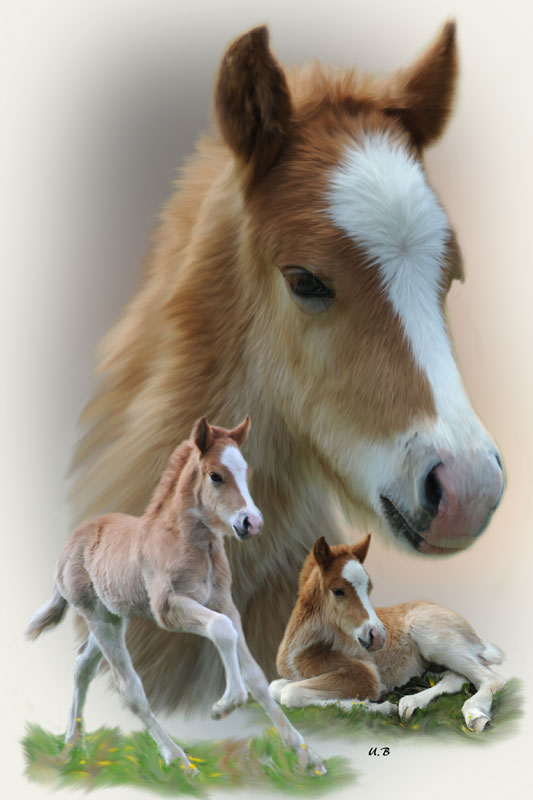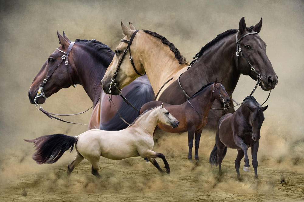 Pferde Fotocollagen mit Maltechnik